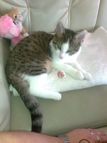 heute hab ich versucht, harmony umzulegen, meine mama lachte sich schlapp, weil ich kleines wesen an der großen coony dranhing. boah war das anstrengend. habs nicht geschafft, aber ich wachse ja noch  naja, u. der simba, der schnuppert immer öfter an mir, aber der ist sehr eigen, wenn der nicht will, hab ich gleich mal eine sitzen, aber es tut nicht weh, keine sorge