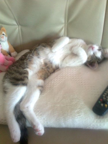macht euch mal keine sorgen um mich! so von wegen behinderung, ich bin doch nicht irre bei mir ist alles bestens, die blumentöpfe fliegen, an diversen kaffeetassen fehlen die henkel, schnuppern u. rumfressen tu ich immer noch an allem, was mir vors mäulchen kommt u. knurren u. fauchen ist meine leidenschaft, wenn mir jemand ans fell will, um mir was wegzunehmen, z.b. wenn ich kartoffelschalen knabbere. frauchen kann zwar nicht verstehen, was daran so lecker sein soll, aber ich finds halt klasse