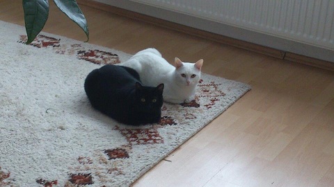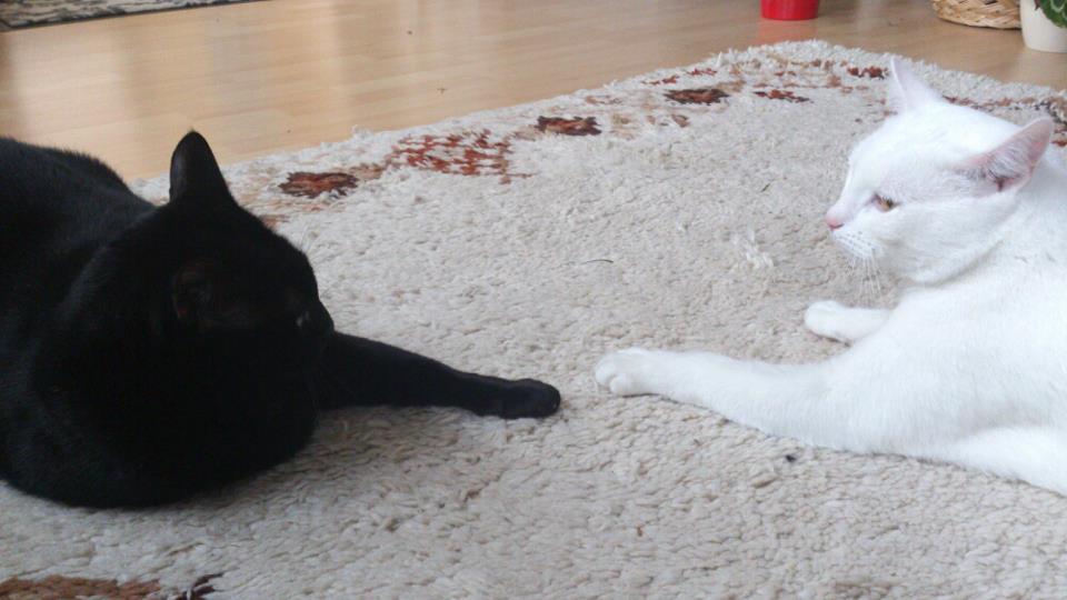Willy ist jetzt seit 3 Wochen bei uns und die zwei sind echte Granaten. Lucy lässt zwischenzeitlich ziemlich den Kotzbrocken raushängen und verdrischt ihn so, dass er sich bald nicht mehr rühren mag und Angst hat, aber nach ein paar Mal dazwischen gehens und sie dabei stören geht das jetzt auch. Er flüchtet sich dann auch einfach auf den Schrank und ist da sicher. Die Zeit in der sie kuscheln oder lieb miteinander spielen überwiegt auch deutlich. Das Futter teilen sie sich (wir haben beide Sorten Trockenfutter zusammen gemischt, kommt eh aufsselbe raus und NaFu mag er mittlerweile auch nicht mehr Mit der Wasserschüssel haben wir jetzt auch ne Lösung. Nachdem er es geschafft hat, die 5Liter Gießkanne umzuwerfen und das Wohnzimmer zu fluten, wollte ich eigentlich so einen Trinkbrunnen bestellen. Aber Mum hat ne durchsichtige Glasschüssel in eine Ecke des Bades gestellt und irgendwie - wieso auch immer - wenn es dort steht, wirft er nichts mehr um. Warum auch immer. Also konnte ich mir das sparen. Es hat sich also alles gut entwickelt, es wird oft über den weißen Riesen geflucht (weil der Trampel echt viel kaputt macht) aber wir sind doch alle sehr glücklich mit ihm Danke nochmal für die Tips wegen der Wassersache!
