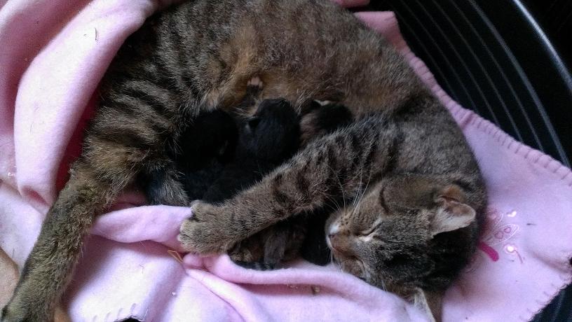 Hallo, ich habe immer mitgelesen und war schon sehr berührt, dass die kleine Kitty sich offenbar genau den richtigen Menschen ausgeguckt hat. Und jetzt, als ich das Bild von der Mama-Katze gesehen habe, auf dem sie so zärtlich ihre Babys umfasst (sicherlich eine sehr menschliche Interpretation), ist mir richtig das Herz aufgegangen. Alles Gute für die kleine Katzenfamilie, und meine Hochachtung vor den Menschen, die dieser armen Seele ein Zuhause gegeben haben. Liebe Grüße von E