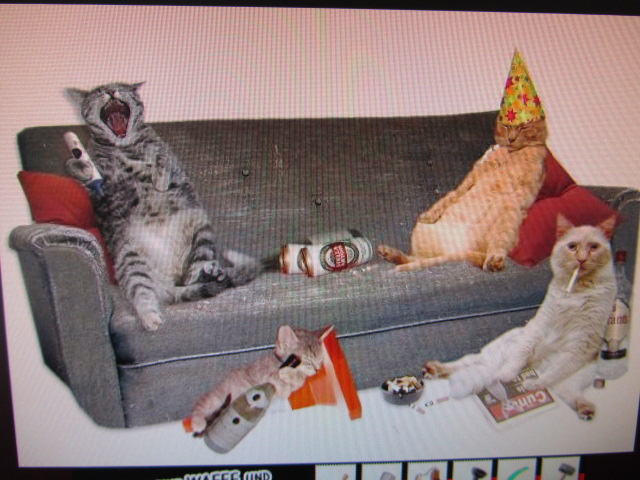 Re: KatzenpartyHallo, dann wünsche ich viel Spaß...! Aber denkt dran, kein Alkohol für Katzen - sonst sehen die Katzen so aus, wie auf dem Foto.
