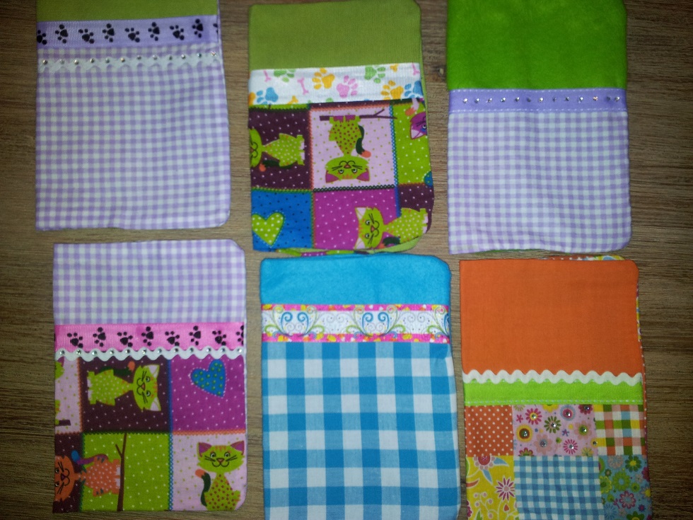 So, hier ein paar Bilder von den letzetn Schtuhüllen die für Katzen in Frage kommen, ich habe sonst noch welche für Hunde. Alle aus festem Stof mit einer Doppelstichnaht versehen und Webbbänder in verschiedenen Ausführungen, teilweise mit Strass versehen: