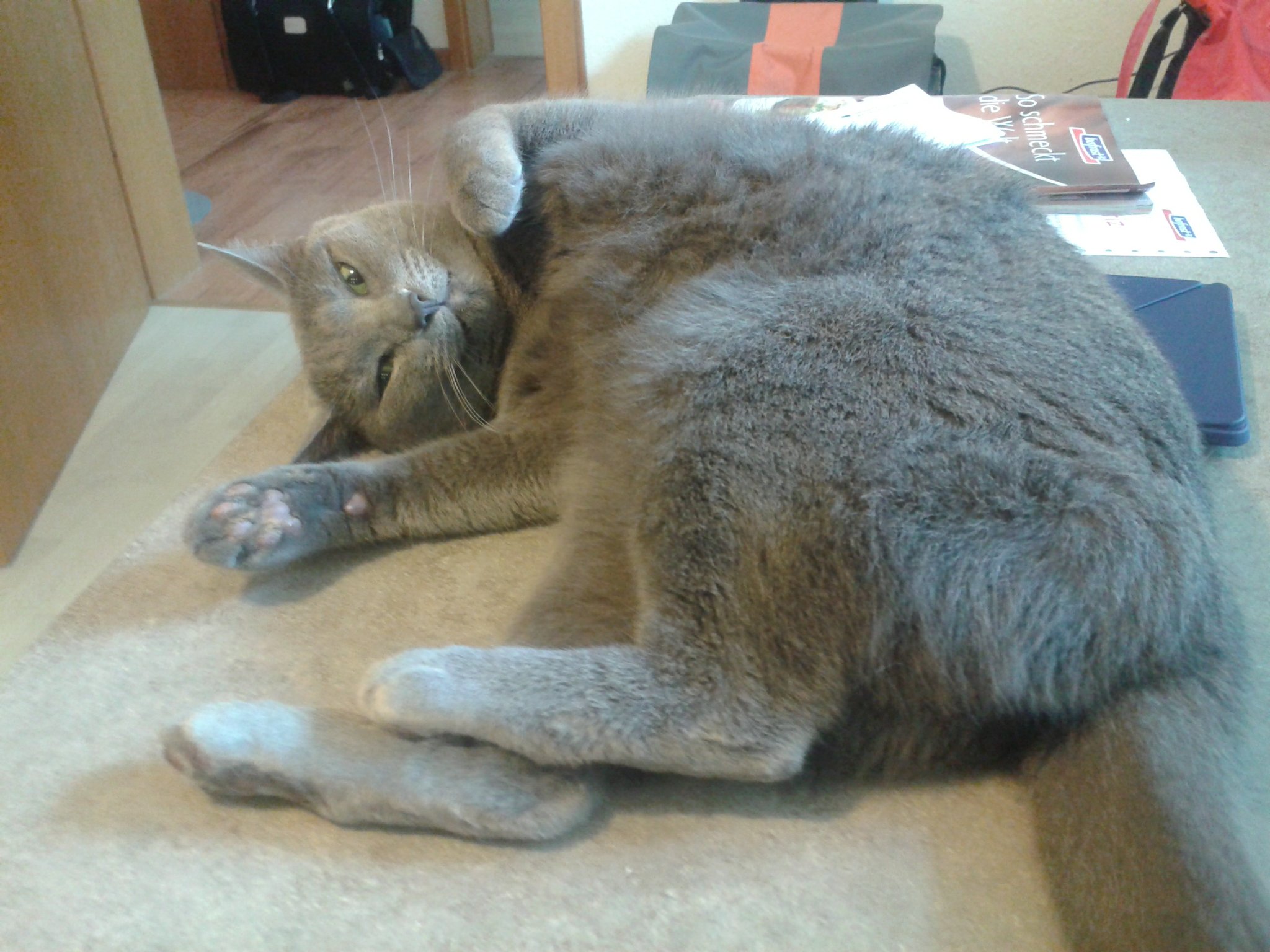 - Joda ist ultra ruhig und friedlich, und sitzt bis jetzt in verschiedenen Verstecken im Wohnzimmer, Aura hat ihn drei Mal angefaucht, als er aus dem Transportkorb kam, und er hat sie einfach ignoriert - Aura knurrt und faucht jeden an, der ihr über den Weg läuft, vor allem aber geht sie auf Schrödinger los, wenn sie ihn auch nur hört - an Joda ist sie scheinbar nicht interessiert, wenn dann hat sie Angst vor ihm (Joda sitzt im Wohnzimmer und Aura traut sich nicht hinein) - Schrödinger ist eingeschüchtert von Auras Pöbelei und von Joda, der eigentlich nur ein sehr kleines Häufchen Elend ist und überhaupt nichts macht, nicht mal herumlaufen