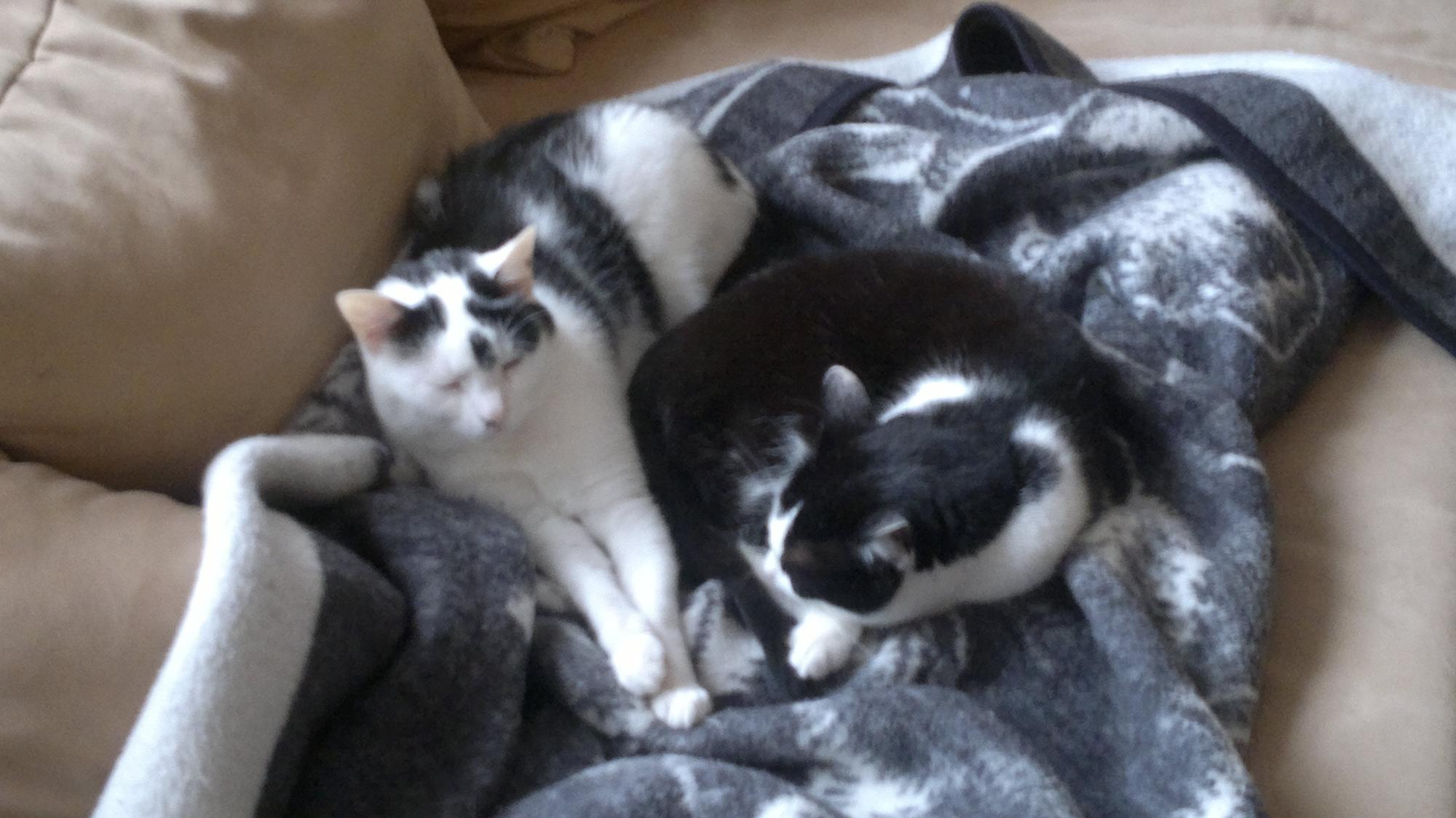 Habe ihnen heute früh eine wärmflasche unter die decke gelegt, damit mein krankes mäuschen drauf schlafen kann.... so schaut das jetzt aus  die schwarze ist krank... liegt aber nur mim popo drauf
