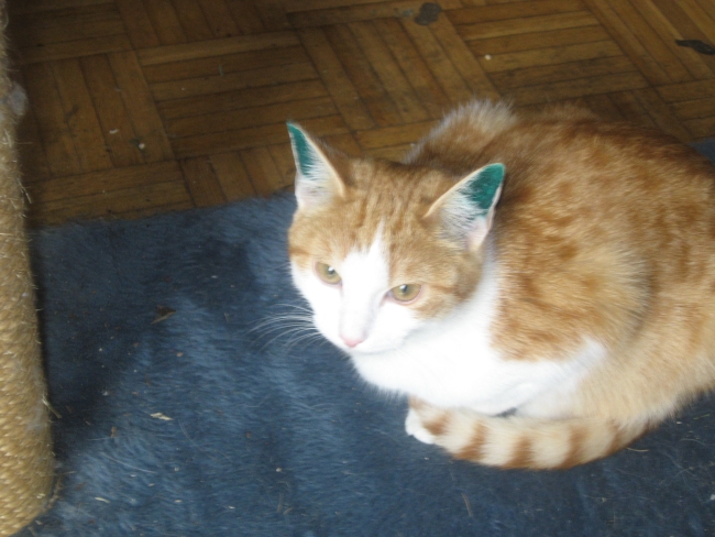Mein kleiner Captain war beim kastrieren. Zusammen mit den drei kleinen von meiner Schwester war am Dienstag der Termin. Um 10 Uhr haben wir sie hin gebracht und um 12 durften wir sie wieder abholen. Alle vier waren da schon fast putzmunter. Captain wurde auch tötowiert und hat sich inzwischen die grüne Farbe auf dem ganzen Körper verteilt. Er schaut total lustig aus. Ich hoffe daß er ab jetzt seine Mama Ronja nicht mehr so viel ärgert. Die arme tut mir manchmal richtig leid. Auch Merlin willl immer mit ihr spielen und dann läuft sie immer schreiend weg.