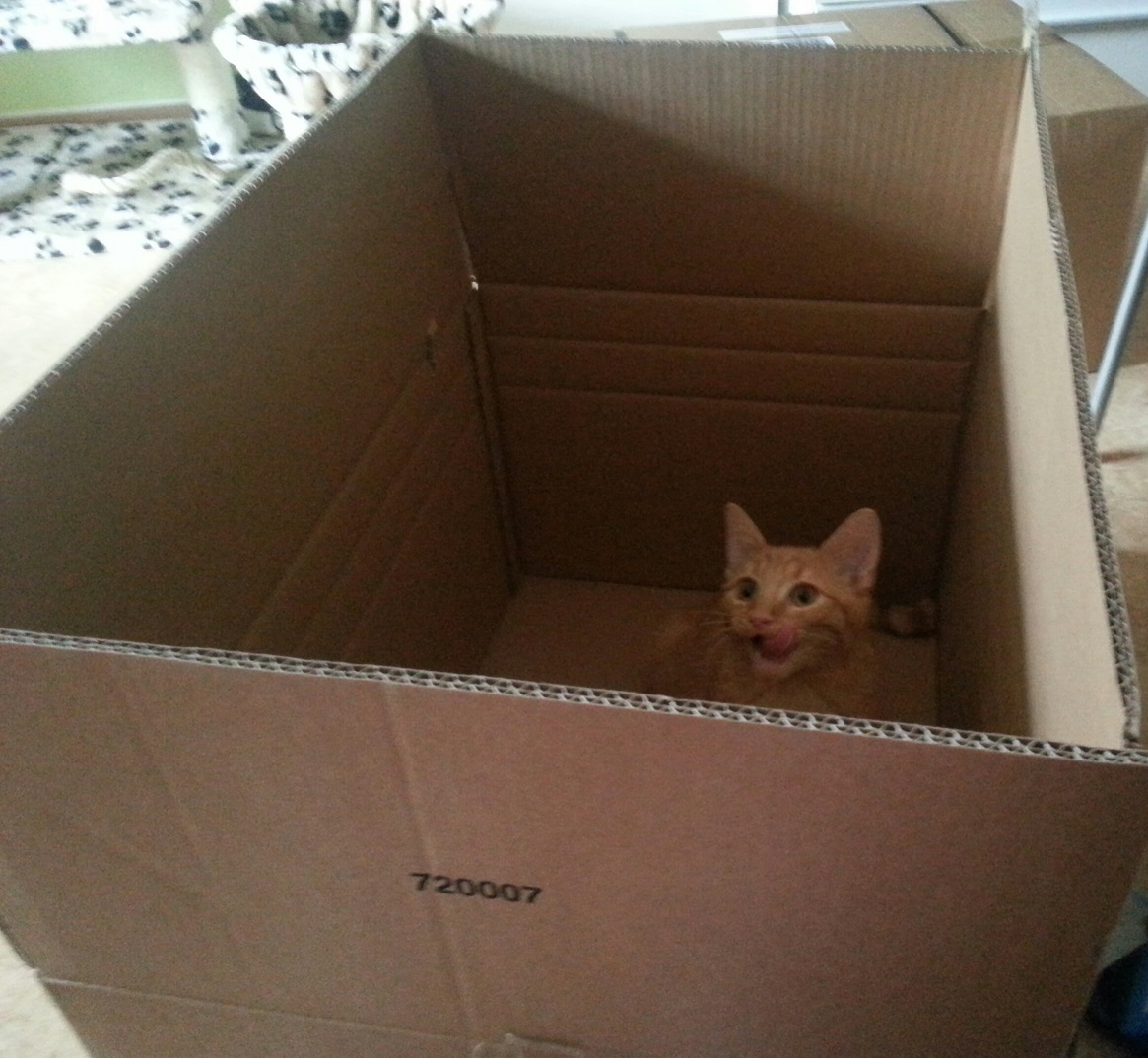 Aber so schaut es aus, wenn das lästige Futter endlich raus ist, aus dem Karton-Paradies: