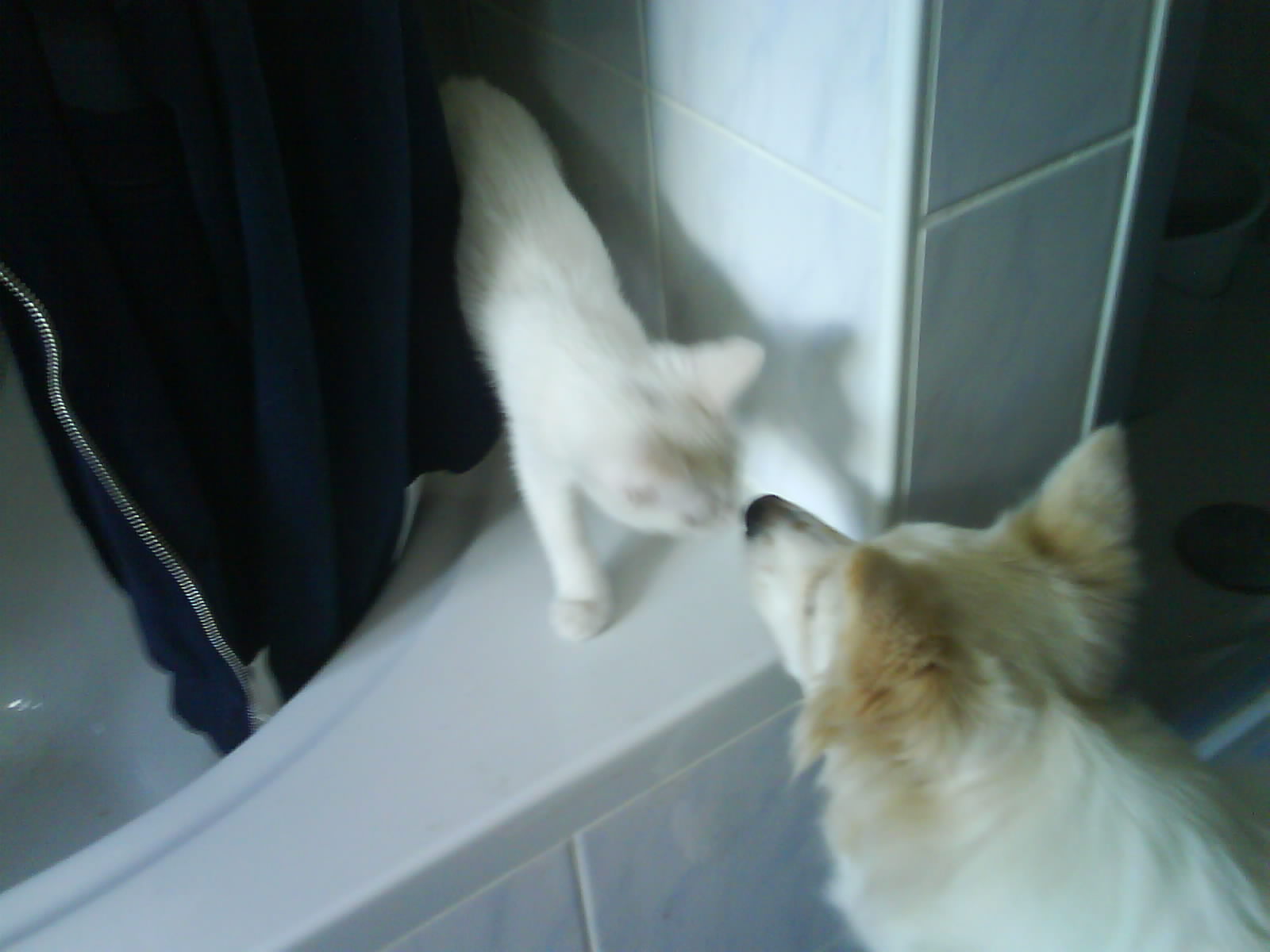 Zensus lernt gerade den Garten(vorerst nur mit meiner Begleitung!! ;) ) kennen und kämpft weiterhin mit der Duldung von der Kira...Sie faucht ihn immer noch an und "wischt" ihm auch eine, wenn er zu nah kommt...Im Garten muss Zensus andere Regeln lernen, da meine Hunde dort die KAtzen aus Spaß jagen(nicht verletzen!Nur festhalten und abschlappern)