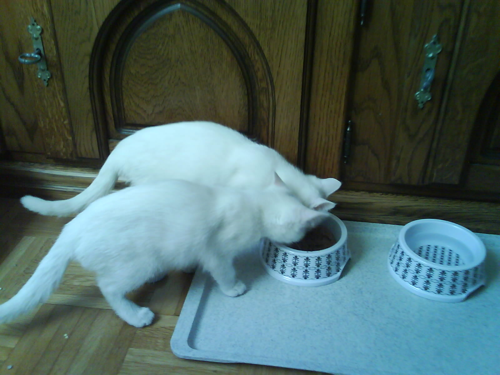 endlich kein Gedränge und Stress am Futternapf mehr..