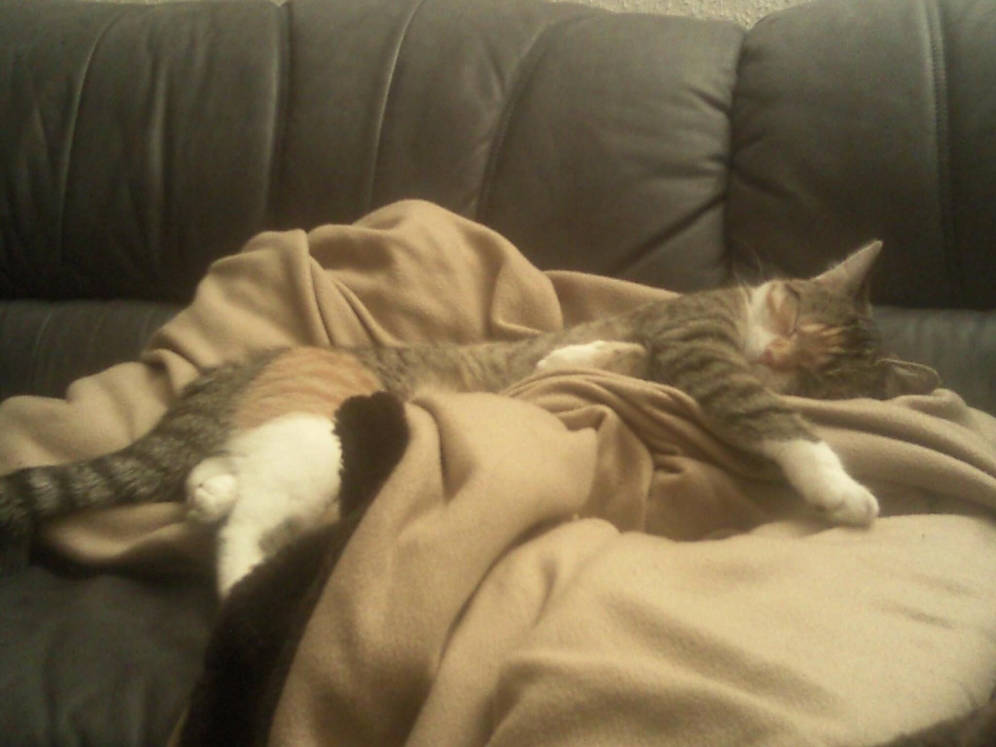 Wie waren sehr irritiert als sie sich zu meiner hündin gelegt hat... Wussten nicht wer zu erst die luft an hält :D frei nach dem motto wenn ich mich nicht bewege bemerkt sie mich nicht! :D