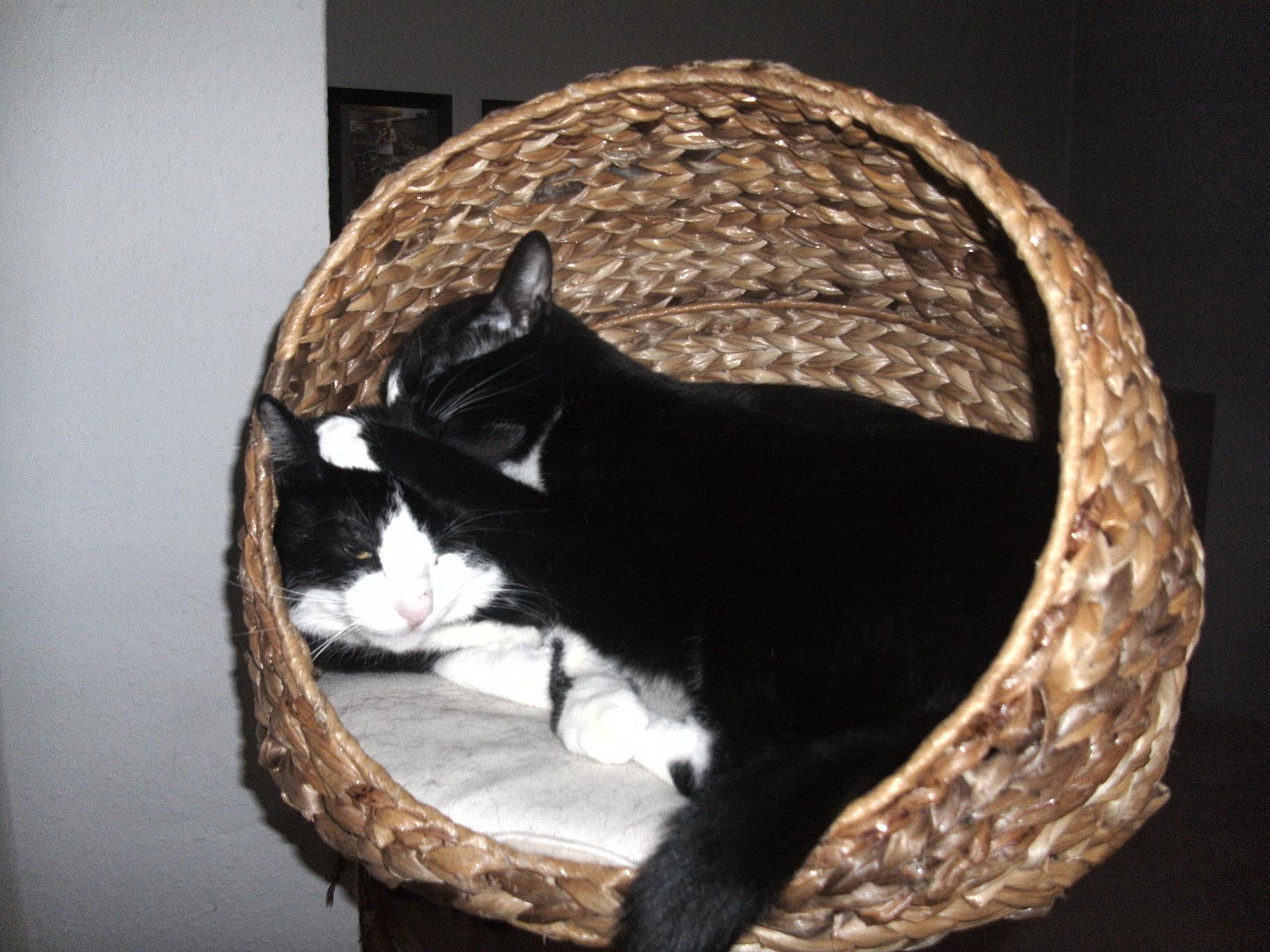 Meine zwei Grazien quetschen sich auch in ein rundes Bettchen mit 28cm Durchmesser zusammen rein, wenn sie kuscheln wollen. Also Platz ist kein Problem für die Mietzentiere. In dem großen mit 43cm hab ich sie noch nie kuscheln sehen. Viele Grüße