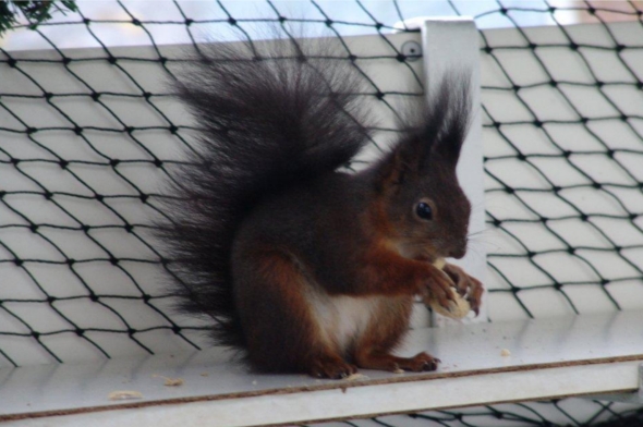 erstmal ganz lieben dank fürs einstellen. ja,das ist eins von zwei eichhörnchen die uns jedes jahr besuchen.das andere ist neu ,ich krieg es nicht vor die linse ,immer wenn ich den auslöser drücke ,hat es schon die flucht ergriffen.dabei hat es so eine rote farbe. ja ,mein 5 samtpfoten sind manchmal so geschafft vom gucken ,dann bekommen sie gar nicht mit wenn ein hörnchen wieder da,aber wenn die dann anfangen die nuss auf zu raspeln,stürzen alle zur balkontür.es ist wirklich ein spaß dabei zu zu schauen. leider kann ich die balkontür jetzt nur noch auf kippe machen und unter aufsicht,aber was solls. liebe grüße JULIA "sonnige,leuchtende Tage,nicht weinen,das sie vergangen,lächeln,weil sie gewesen.