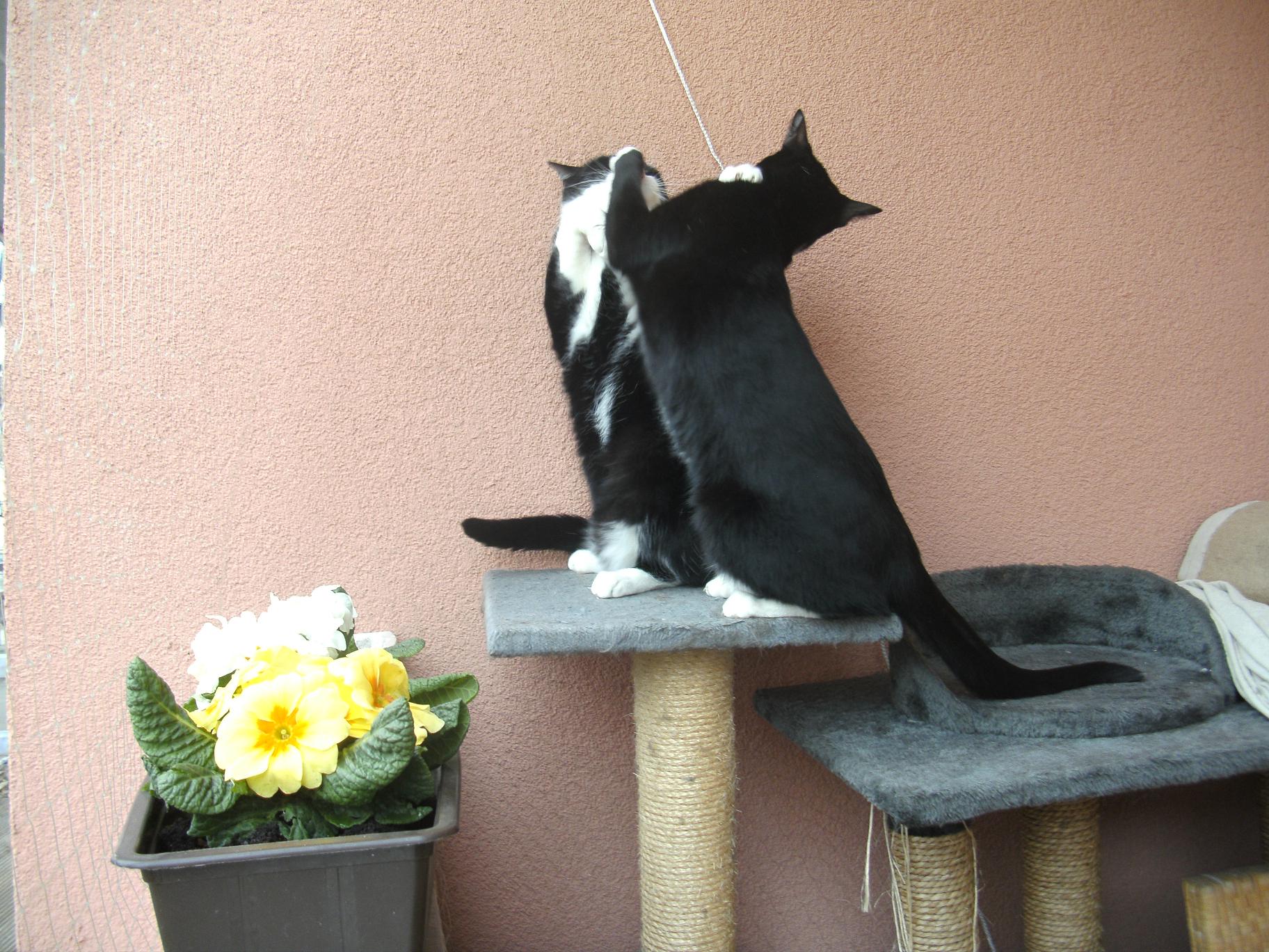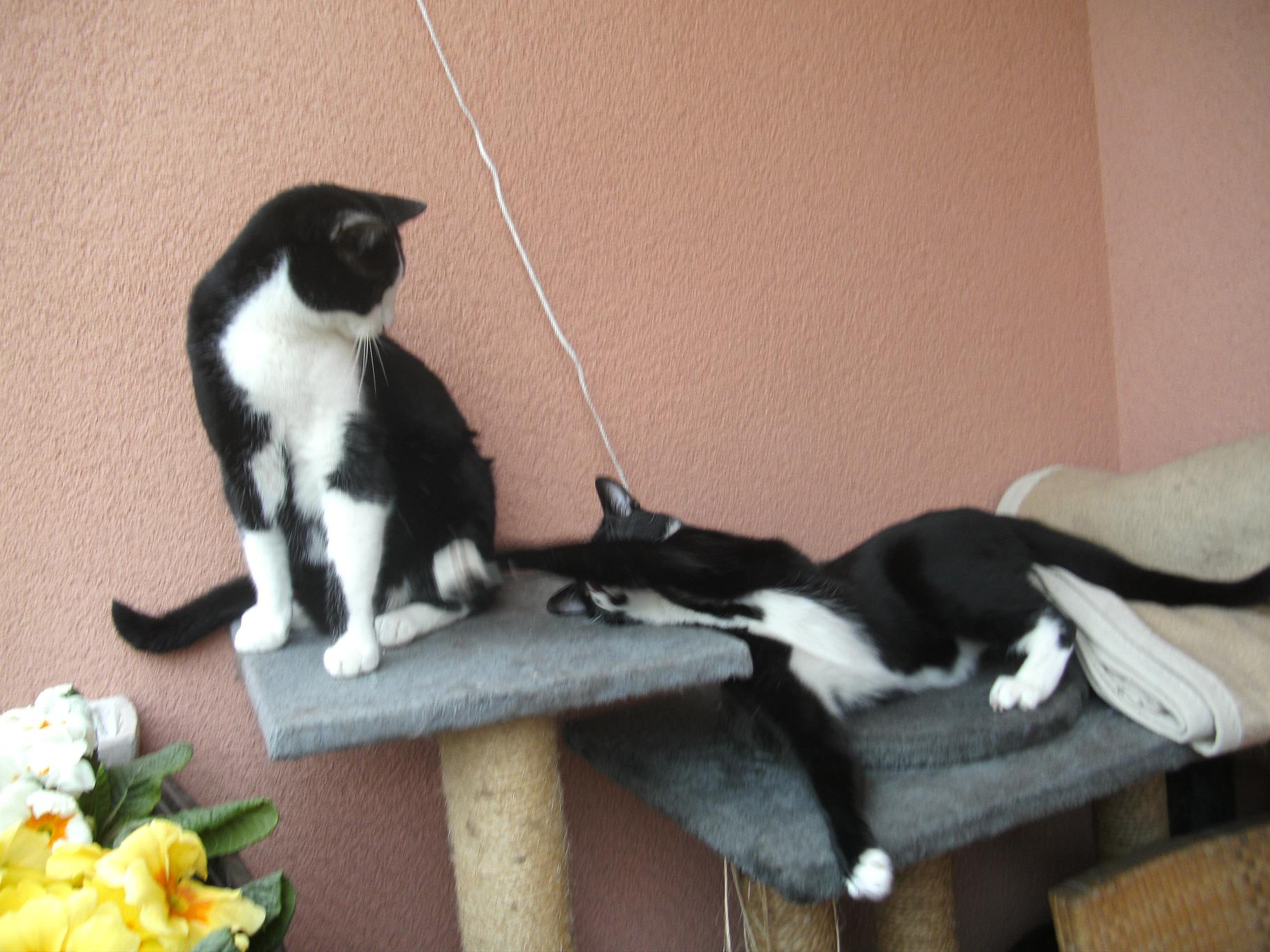 das sind super fotos. die zwei sehen toll zusammen aus.kannst du sie auf die schnelle aus einander halten. zwei hübsche schwarz weiße bengels. macht süchtig nach mehr fotos von dem duo. liebe grüße JULIA "sonnige,leuchtende Tage,nicht weinen,das sie vergangen,lächeln,weil sie gewesen.
