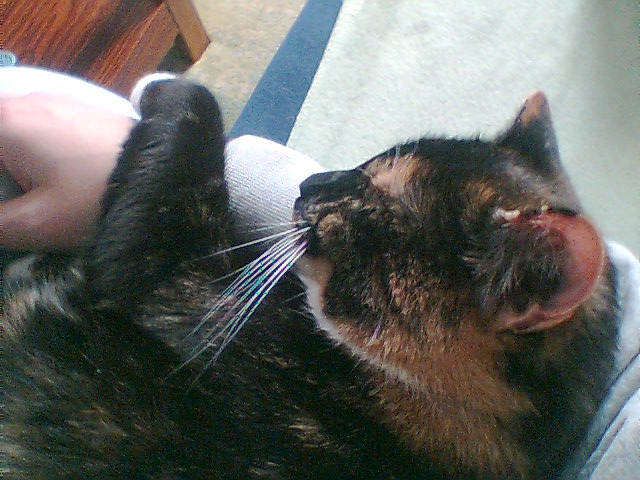 Sie suchte mich im Tierheim als ihr Personal aus und lebt seit dem bei mir. Viele Schrecken haben wir in diesem Jahr schon überstanden( Katzenschnupfen, Silvesterknaller gegen den Kopf, Unterkieferbruch), aber auch super schöne Momente erlebt.