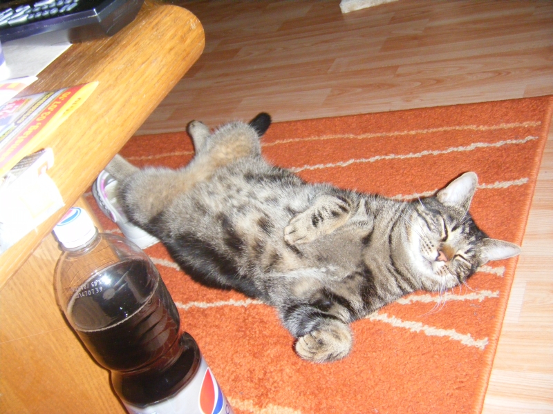 Bin ein kleiner Computeridiot, was den privaten Bereich angeht, und meine beiden Kater können mir da auch nicht helfen. Sie heissen Dickie und Timmie, sind Brüder 10 Jahre alt ca. und sind seit Anfang August bei mir. Sitze gerade in meinem Garten in der Sonne, Timmie hat sich eben neben mir auf dem Boden in die Sonne gelegt und Dickie ist grad unterwegs, guckt wahrscheinlich Löcher in die Luft - nein - da kommt er gerade, ja, und jetzt setzt er sich und guckt Löcher in die Luft.