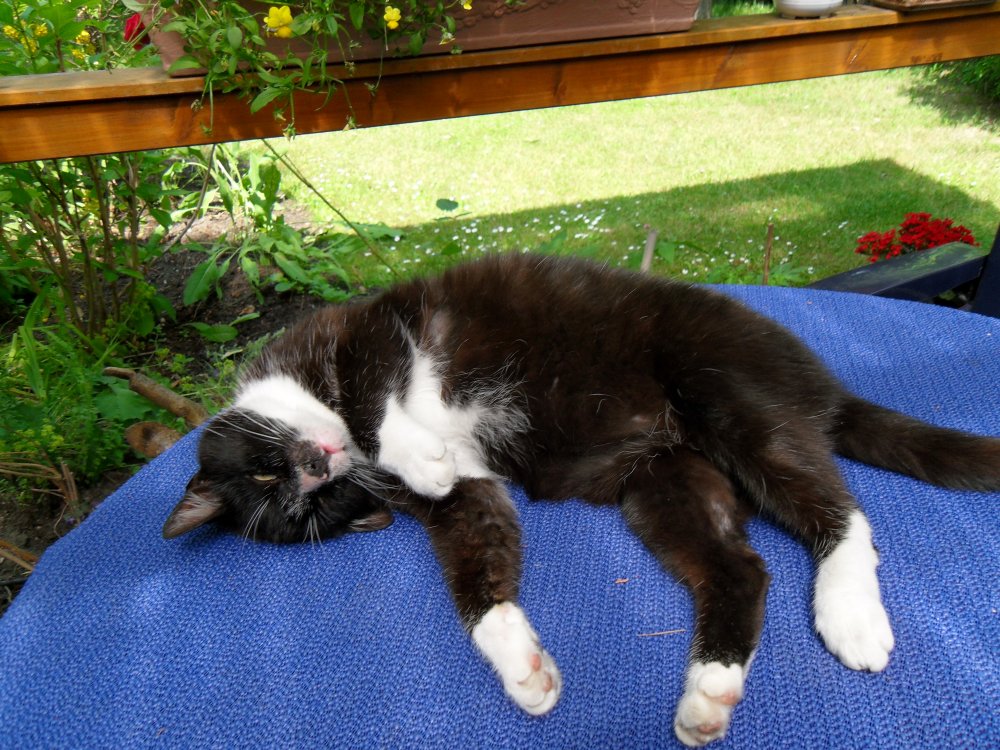 Miezi Mauz wir werden gaaaanz ruhig,die Pfoten werden schwer alle Mäuse sind weiiit weg... ja so ähnlich muß sich meine Jessy fühlen wenn sie im Schlaf die Glieder verrenkt