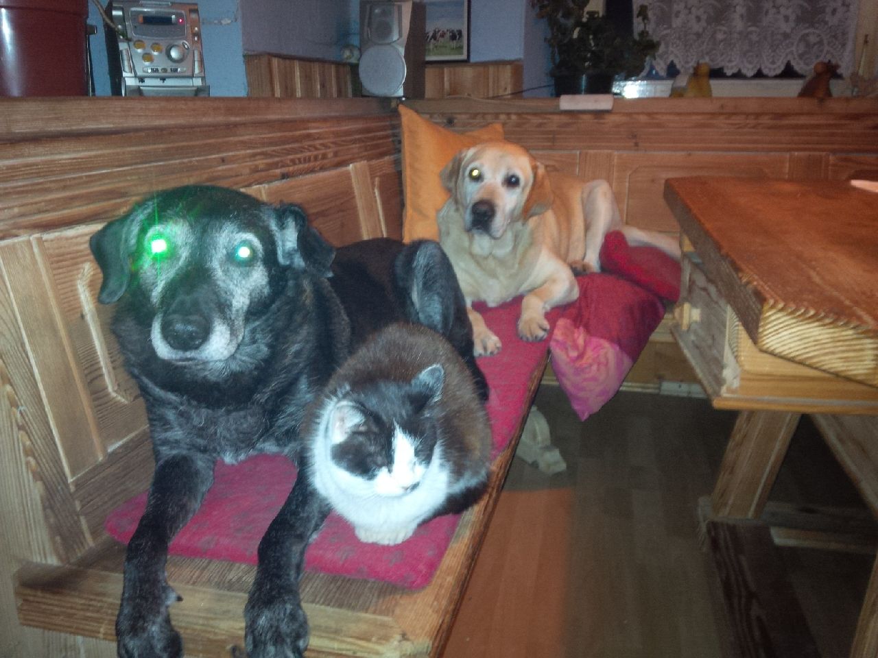 nur, ich muss sagen, ich hatte immer erst katzen, dann einen tolstoi aus tierheim, der sich estmal gefallen lassen musste, das mein miki und mein chich ihm eine geknallt hatten, aber der hund war erst 9 montate, dann kam lishi auch hund dazu und ich hatte immer liebe katzen-hundi familie, nach ein paar jahren kam dann noch mein mephisto, 5 wochen alt, ein fundkaterchen, meine lishi war scheinschwanger (laut tierarzt) und joo, so wurde er mit hundemilch aufgezogen und war dann irgendwie ein bruder von meiner coralie(der schwarzen grauen( die ich heute noch habe)