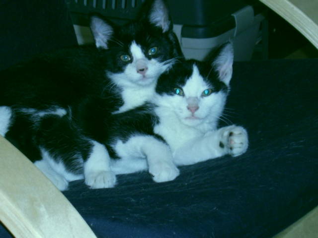 dann haben wir uns vor etwas mehr als 1 1/2 jahren zwei kleine baby kater dazu geholt und sie auf die namen "Floppy" und "Athlon" getauft. Floppy entwickelte sich rasant zu einem stattlichen Kater mit kleinem wohlstandsbauch und allem was dazu gehört