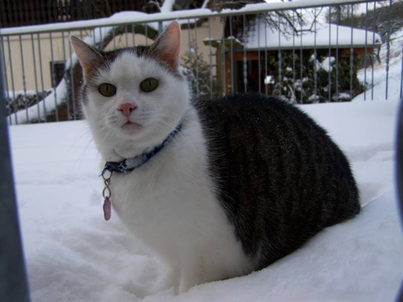 Hihi, ja der Schnee ist immer eine Überraschung für die Katzen.