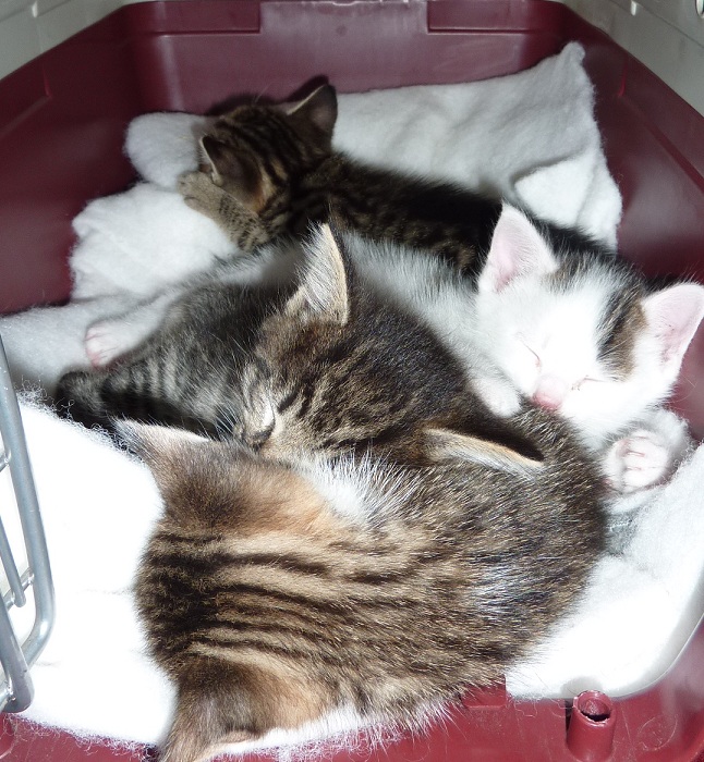 Re: trächtige Katze zugelaufenHIer schlafen: Maxi, Theo, Lilli und Julie.