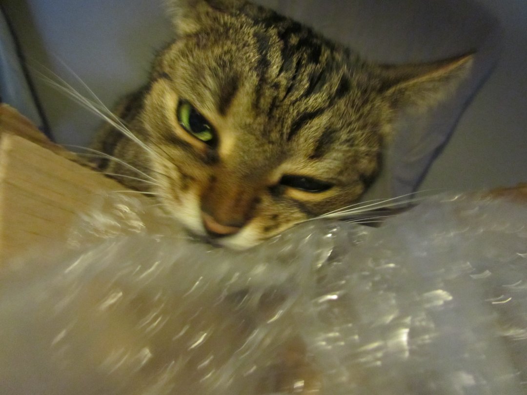 Hihi das ist ja süß!! Wie zufrieden und entrückt die Mira der Welt aussieht, während sie da so knabbert! Also ich muss ja gestehen, dass ich Folien immer sofort wegpacke. Ich habe einfach Angst, dass sie was abreißen und unterschlucken. Gesund ist das glaube ich nicht. Und ich bin ja nicht immer Zuhause, dass ich es sofort bemerken würde, wenn sie ein Stück geschmuggelter Folie irgendwo hervorkramen und bespielen würden  Aber meine sind auch nicht soooo wild drauf!! Das knistert und raschelt zwar so schön, aber das tut Papier auch Aber von der Züchterin meiner beiden habe ich mal gehört, dass eine Katze von ihr das auch immer gemacht hat. Allerdings immer nur, wenn sie schwanger war. Das fand ich auch seltsam Aber wer weiß, was da in den kleinen Köpfen so vor sich geht hihi.