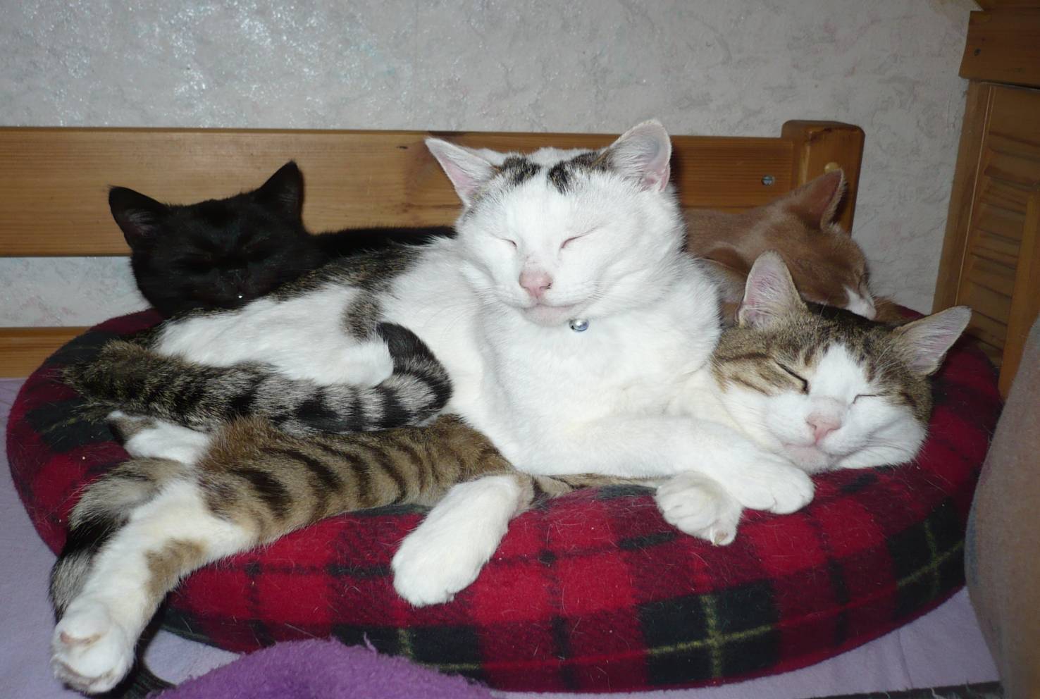 deine meute im bett ist ja super.süß so viele fellnasen auf einem haufen geknubbelt. lg.Julia "sonnige,leuchtende Tage,nicht weinen,das sie vergangen,lächeln,weil sie gewesen.