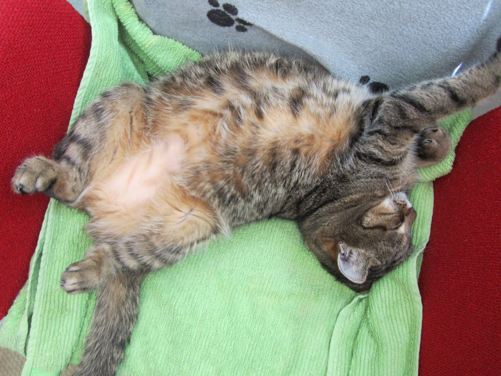 hihi das kenne ich. Ich war heute morgen auch ziemlich daneben, vor allem weil der Kleine uns eine schlaflose Nacht beschert hat. Auf Laminatboden ging das dann die ganze Nacht Takk-takk-takk-takk-takk-takk-takk-rtschschschschhhh!!! Den Flur hoch ins Schlafzimmer und den Flur wieder runter und wieder den Flur runter gepest... Der Kleine hat eine Energie, das ist unglaublich. Wir würden ihn ja tagsüber auslaugen, aber er schläft tagsüber auch recht viel und ich habe gelesen, man soll kleine Kätzchen auf gar keinen Fall wecken, weil sie unbedingt ihren Schlaf brauchen. Naja, dann verzichten wir halt eine Weile auf unseren, irgendwann wird er alt genug sein um Nachts vor die Tür gejagt werden zu können Nun ja, jetzt kann sie sich aussuchen, ob sie das KK im Katzenzimmer benutzt oder das im Wohnzimmer, haben vorhin noch eines besorgt und das steht jetzt hier. Nach einer ordentlichen Teppichschaumbehandlung sollte auch unser Sofa in neuem Glanz erstrahlen, so sauber wares schon lange nicht mehr. Bisher sieht es schon ganz gut aus, muss aber morgen noch abgesaugt werden (ja, gesaugt, da muss sich die kleine Maus im Nebenzimmer leider für 2 Minuten die Ohren zuhalten, aber ich denke, das übersteht sie schon, so laut ist es ja im Nebenzimmer nicht, es liegen einige Meter zwischen der Couch und der Bettkatze ^^ ) Oh Gott, ist die süüüüß! Ich muss gestehen, ich habe meinen Bildschirm gestreichelt... Aber man kann dem Drang ihr Bäuchlein kraulen zu wollen ja auch wirklich kaum widerstehen! *-* Hoffentlich wird Aurelia auch mal so locker Gute Nacht und liebe Grüße, Dana.