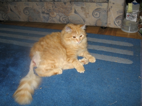 Also, mein Kater Merlin kam eine Woche nach seiner Katration humpelnd und etwas blutig am Unterleib nach Hause. Der TA und ich meinten beide die Naht sei aufgegangen und ich sollte sofort kommen- kam dort auch gleich dran. Was der TA, mein Vater und ich aber dann zu sehen bekamen nachdem das lange puschige Fell weg geschoren war, verschlug uns allen die Sprache.