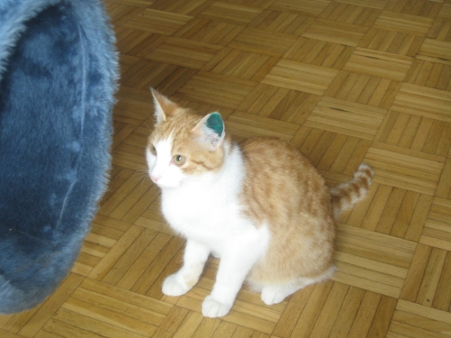 Mein kleiner Captain war beim kastrieren. Zusammen mit den drei kleinen von meiner Schwester war am Dienstag der Termin. Um 10 Uhr haben wir sie hin gebracht und um 12 durften wir sie wieder abholen. Alle vier waren da schon fast putzmunter. Captain wurde auch tötowiert und hat sich inzwischen die grüne Farbe auf dem ganzen Körper verteilt. Er schaut total lustig aus. Ich hoffe daß er ab jetzt seine Mama Ronja nicht mehr so viel ärgert. Die arme tut mir manchmal richtig leid. Auch Merlin willl immer mit ihr spielen und dann läuft sie immer schreiend weg.